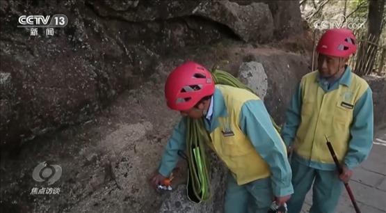 李培生:“放繩索是我們的本職工作,我們要把本職工作做好,不管哪里有垃圾,放得再長(zhǎng)、再險(xiǎn)的地方,我們只要看到垃圾,就必須去撿起來(lái),我們要把黃山保護(hù)好。”