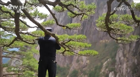 一句守護(hù),背后是胡曉春13年的付出。他的職責(zé)主要是守護(hù)玉屏峰附近的迎客松,它是黃山的標(biāo)志之一。每天早上7時(shí),胡曉春便開(kāi)始了巡護(hù)觀測(cè)工作。