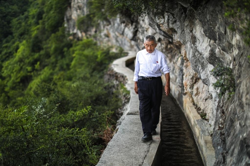 他帶領(lǐng)村民,歷時30余年,在懸崖絕壁上開鑿出一條主渠長7200米、支渠長2200米的“生命渠”;他用實干兌現(xiàn)誓言,為改善山區(qū)群眾用水條件、實現(xiàn)脫貧致富作出突出貢獻;他一心為民、埋頭苦干、百折不撓……