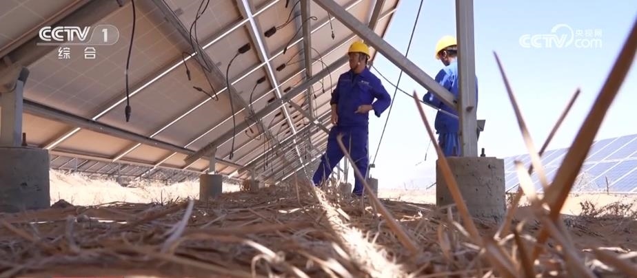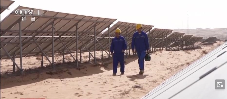 央視網(wǎng)消息:在寧夏中衛(wèi)市騰格里沙漠里,成千上萬(wàn)塊藍(lán)色光伏板整齊排列,隨著太陽(yáng)的運(yùn)轉(zhuǎn)逐日追光,每年可以發(fā)電17億度。這里的工作人員被稱為“追日人”?!拔逡弧奔倨冢麄円廊粓?jiān)守在工作崗位上。