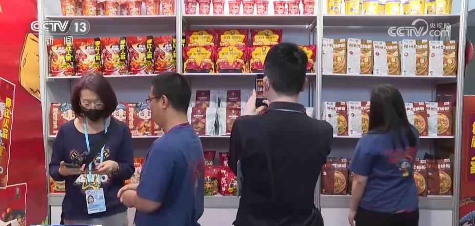 最受歡迎的莫過于預制菜的展位,熱辣的川菜、清淡的粵菜、精致的中式點心,還有各地的特色小吃,各種菜品應有盡有。一加熱,香氣四溢,引來不少外國客商試吃。