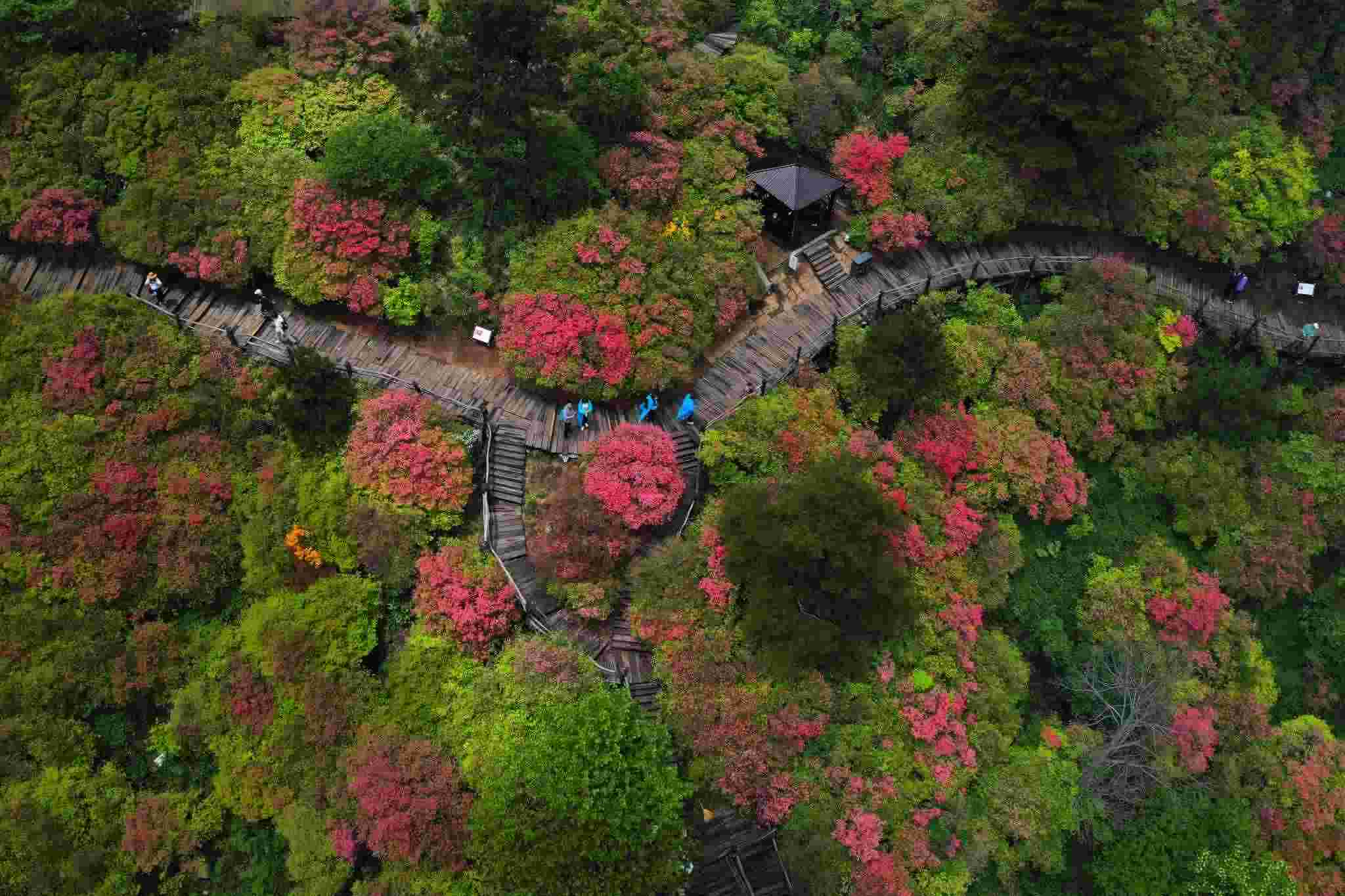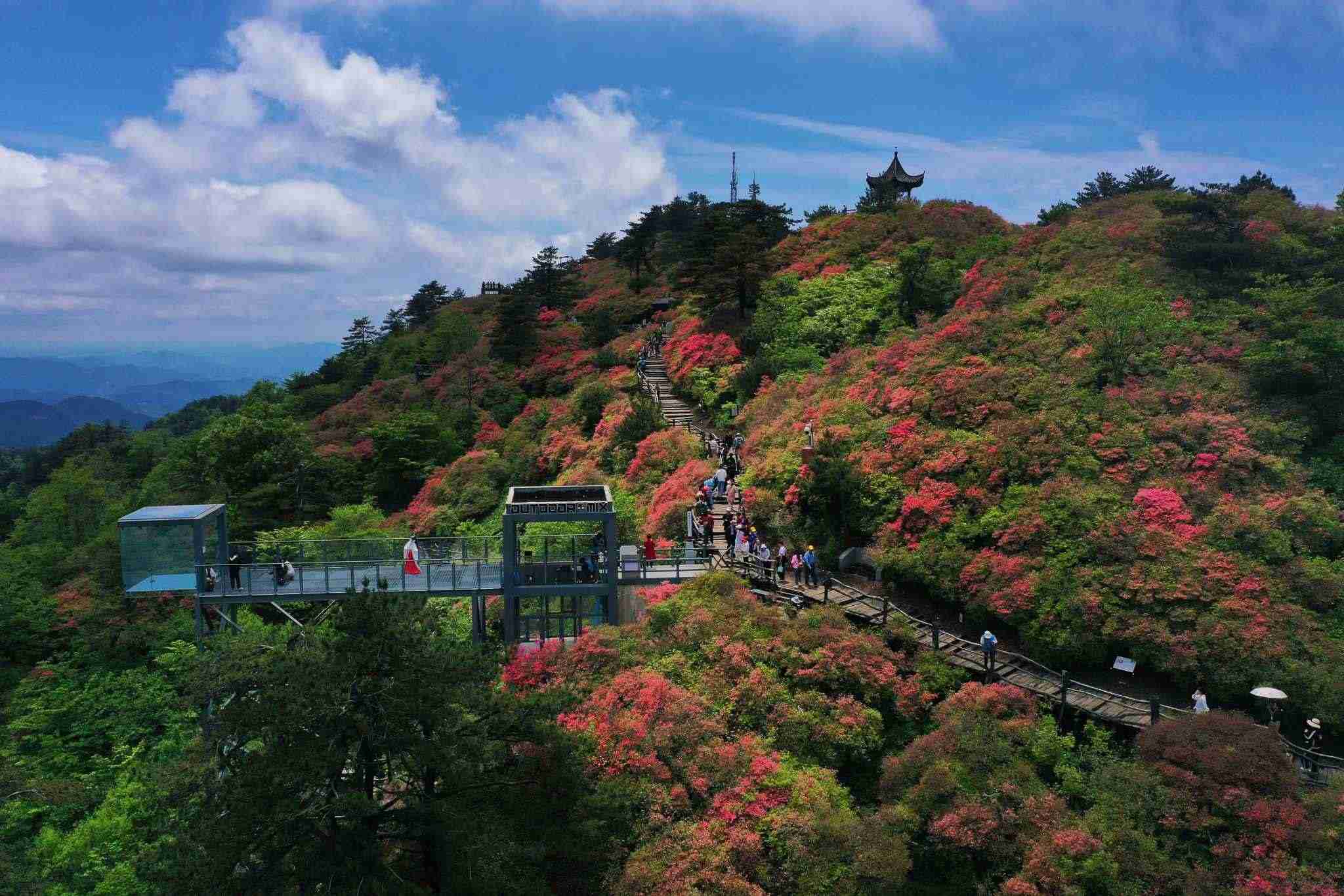 2023年5月5日,湖北黃岡,龜峰山杜鵑花綻放。視覺中國