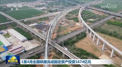 央視網(wǎng)消息(新聞聯(lián)播):國鐵集團(tuán)今天(5月9日)發(fā)布的數(shù)據(jù)顯示,1—4月,全國鐵路完成固定資產(chǎn)投資1674億元,同比增長6.3%。