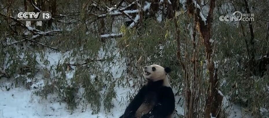 從畫面中可以看到,一只野生大熊貓來到一片結(jié)了薄冰的水洼,用前爪破冰后,順著裂口“開懷暢飲”,憨態(tài)可掬,惹人喜愛。