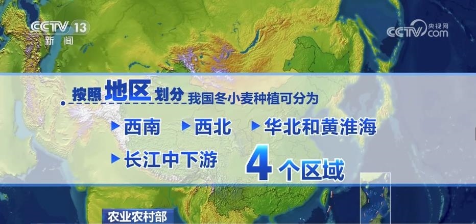 今年,全國冬小麥面積繼續(xù)穩(wěn)定在3.3億畝以上。按照地區(qū)劃分,我國冬小麥種植可分為西南、西北、華北和黃淮海、長江中下游4個區(qū)域。