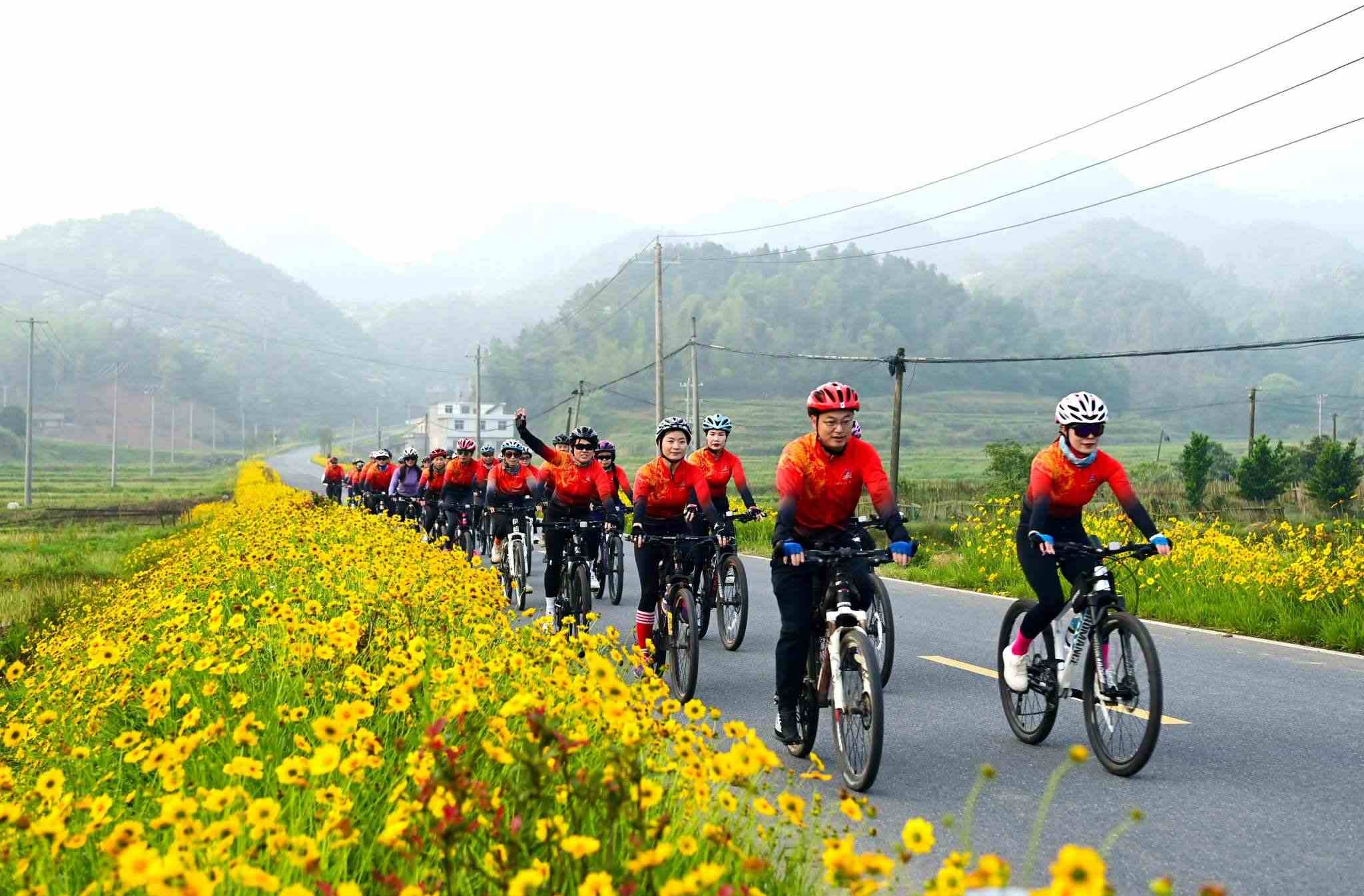 近日,江西省宜春市萬載縣鵝峰鄉(xiāng)多江村通往白良鎮(zhèn)范塘村鄉(xiāng)村公路兩旁的格?;ǜ傁嗑`放、搖曳多姿,吸引眾多騎行、攝影愛好者前來游玩打卡。視覺中國
