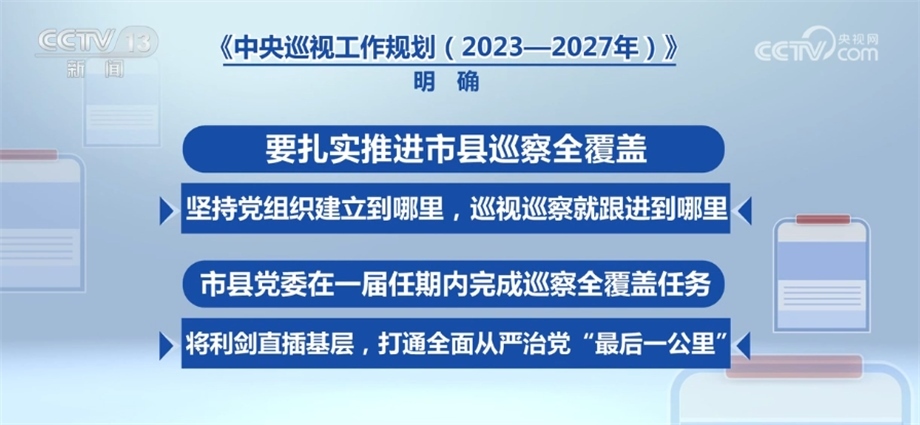加強(qiáng)市縣巡察是推動(dòng)全面從嚴(yán)治黨向下延伸的有力抓手。巡察工作怎樣深化發(fā)展?如何發(fā)揮好巡察綜合監(jiān)督作用,確?;菝裾呗涞??《規(guī)劃》從多個(gè)方面作出了部署。