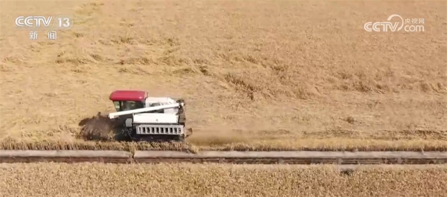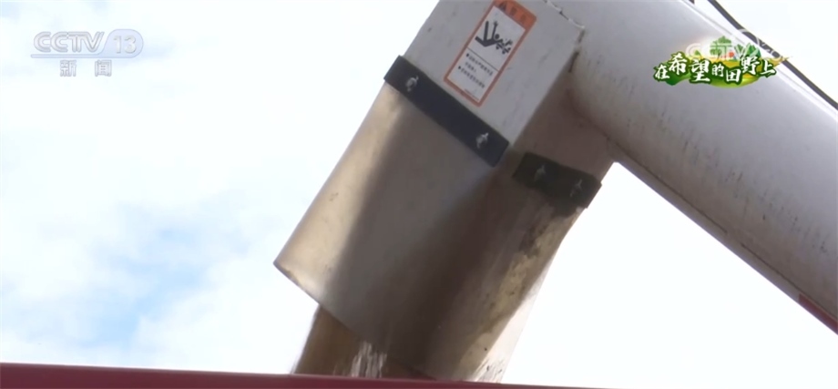 總臺(tái)記者 趙雄:歡迎大家跟隨我們的鏡頭一起走進(jìn)成都平原,來感受豐收的喜悅。我現(xiàn)在所在的位置是四川邛崍市的萬畝糧油示范基地。在我身后,200多畝成片的小麥已經(jīng)成熟,放眼望去,金黃的麥穗在風(fēng)中搖曳,麥浪翻滾煞是喜人。在麥田上,我們可以看到多臺(tái)大型收割機(jī)來回穿梭作業(yè),一簇簇麥穗被卷入收割機(jī)倉,收割、脫粒、除雜一氣呵成,金色麥粒傾瀉入倉。