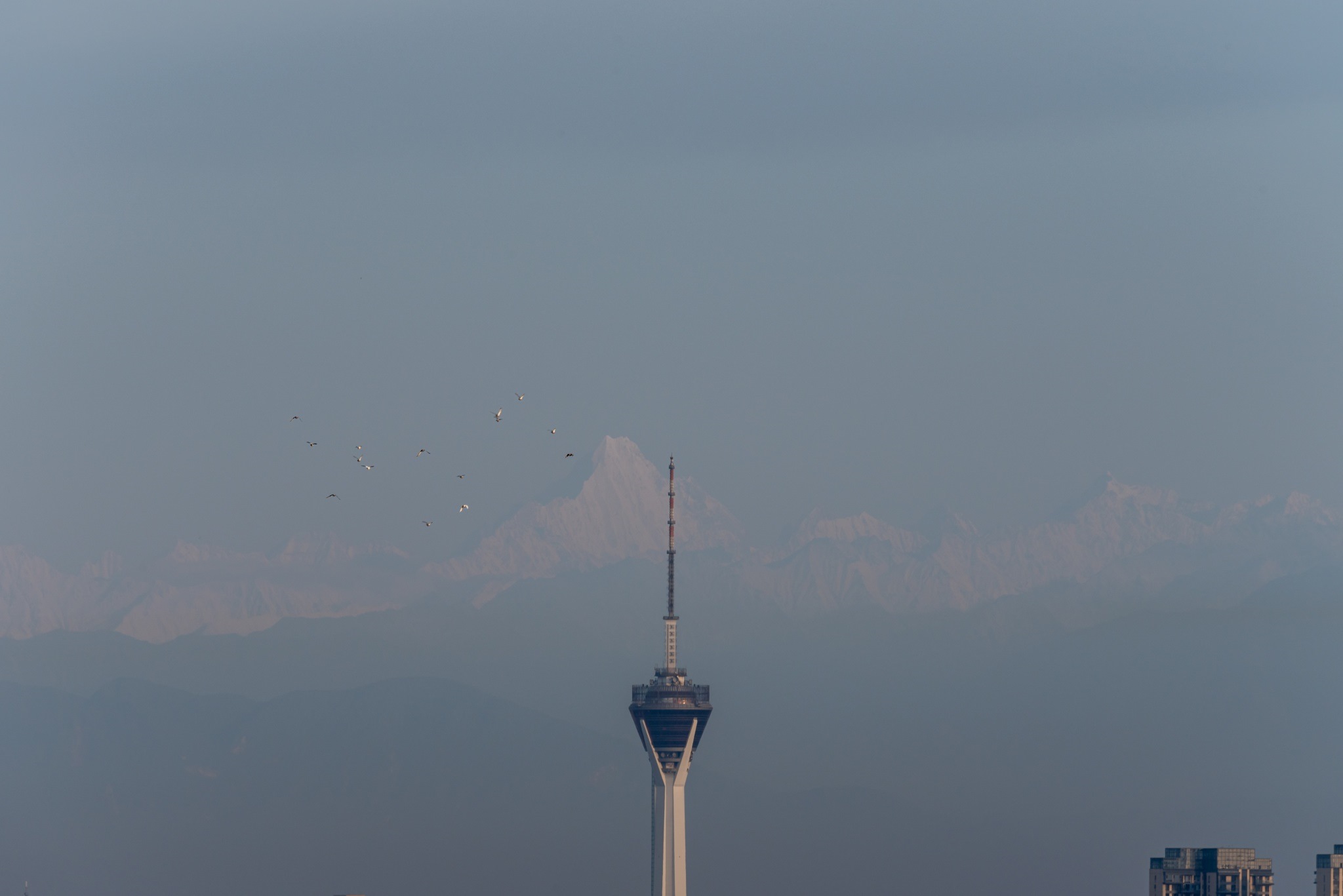 成都:幺妹峰露出真容 與城市建筑同框