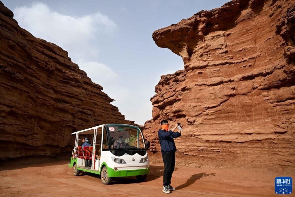 5月13日,游客在內(nèi)蒙古阿拉善盟阿拉善左旗西部夢幻峽谷景區(qū)參觀游玩。