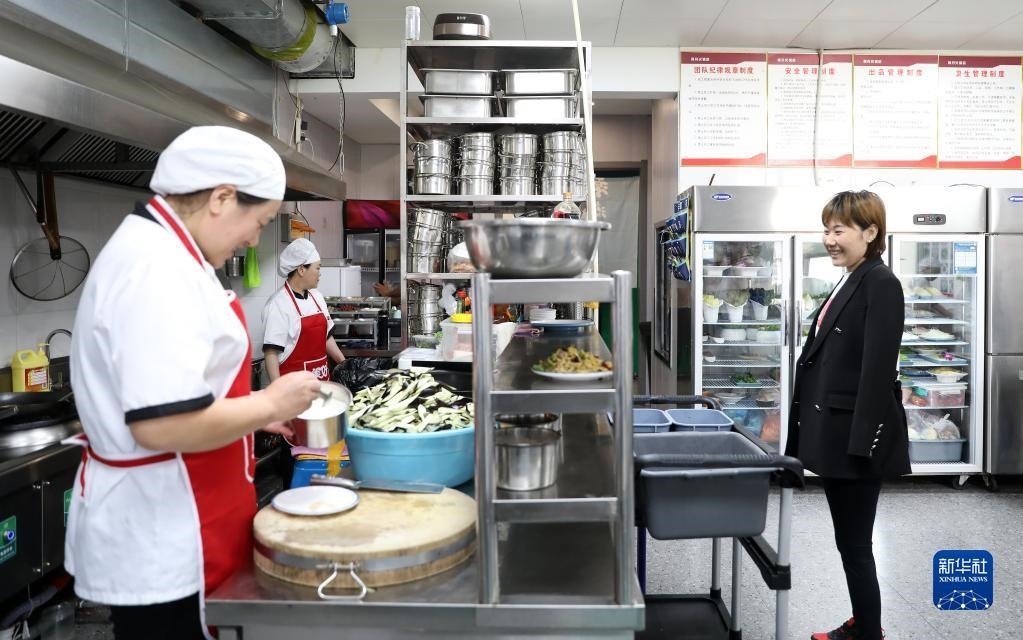 5月11日,韓丹來到自己開的火鍋店后廚,和員工聊聊當天的備菜情況。