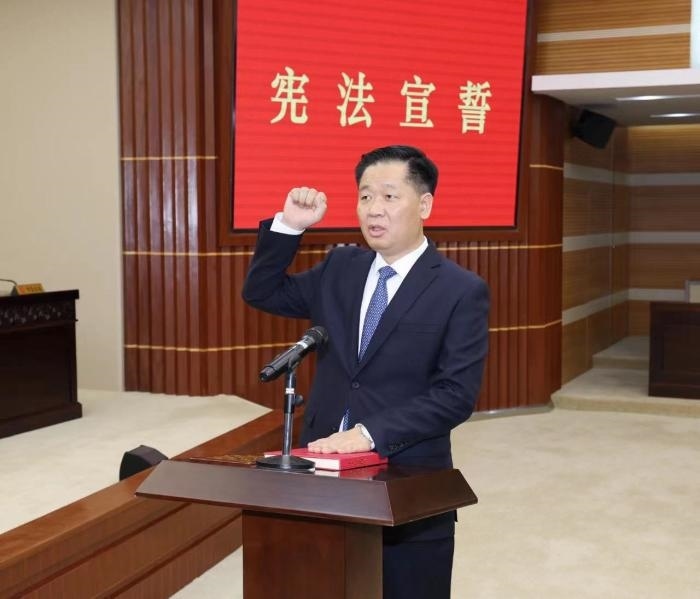 潘國強(qiáng)進(jìn)行憲法宣誓 圖片來源:微信公眾號“揚(yáng)州發(fā)布”