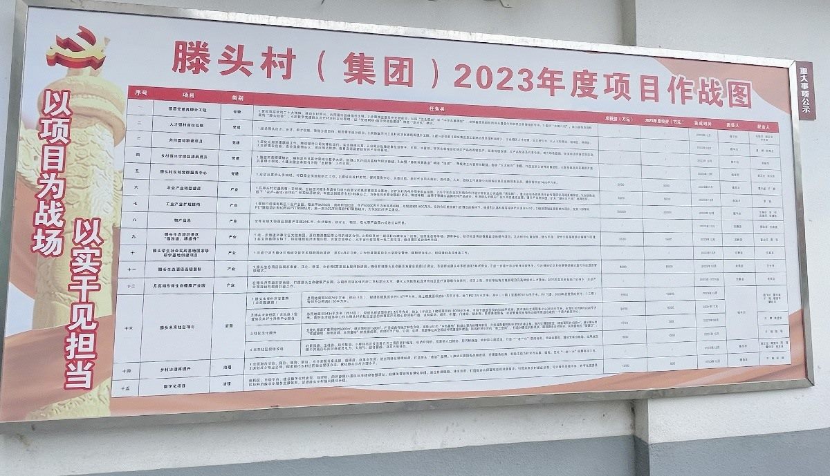 滕頭村內(nèi)公示的2023年項目“作戰(zhàn)圖”