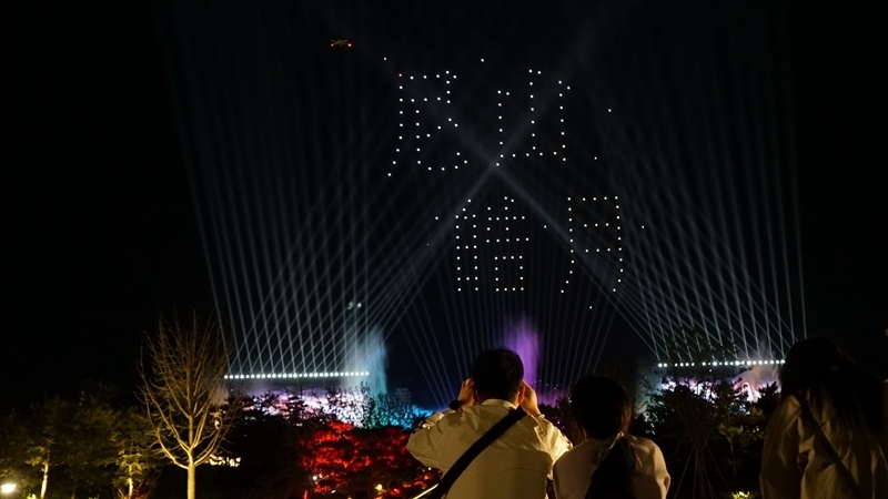 山東曲阜尼山圣境夜游項(xiàng)目?jī)?nèi)的無人機(jī)表演。(受訪單位供圖)
