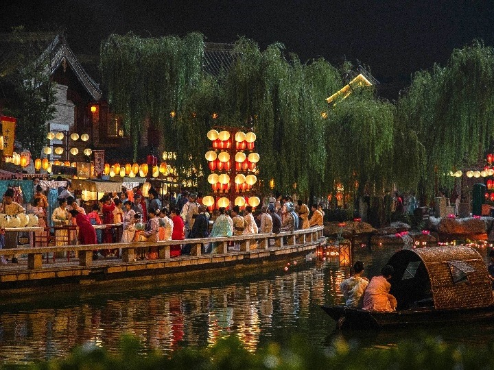 游客在河南省洛陽(yáng)市洛邑古城游玩。(受訪單位供圖)
