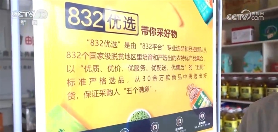 總臺央視記者 蔣樹林:這里是永順當?shù)氐囊粋€農(nóng)村電商公共服務中心,很多“土特產(chǎn)”都通過“832平臺”走出大山,擺上貨架的產(chǎn)品都要嚴格符合五優(yōu)標準,即優(yōu)質(zhì)、優(yōu)價、優(yōu)服務,特別是優(yōu)配送、優(yōu)售后。