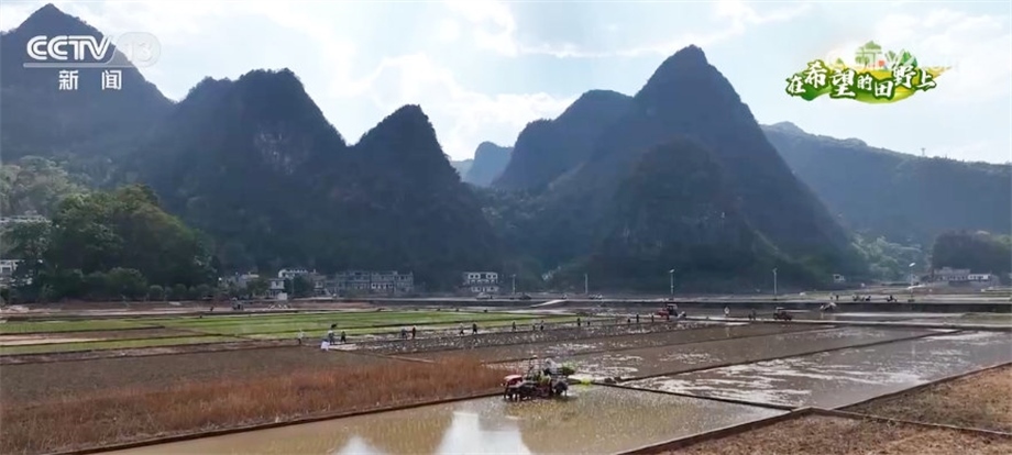 跟隨鏡頭,我們來(lái)到了貴州興義市的水稻高產(chǎn)示范田,插秧機(jī)正在田里忙碌,大小不一的水田正陸續(xù)插上嫩綠的秧苗。