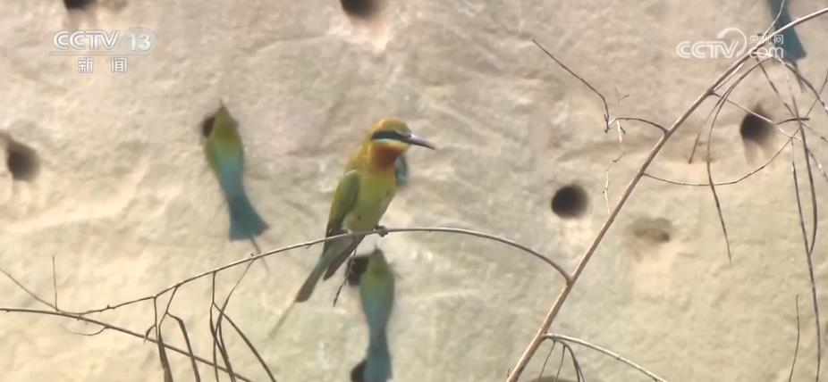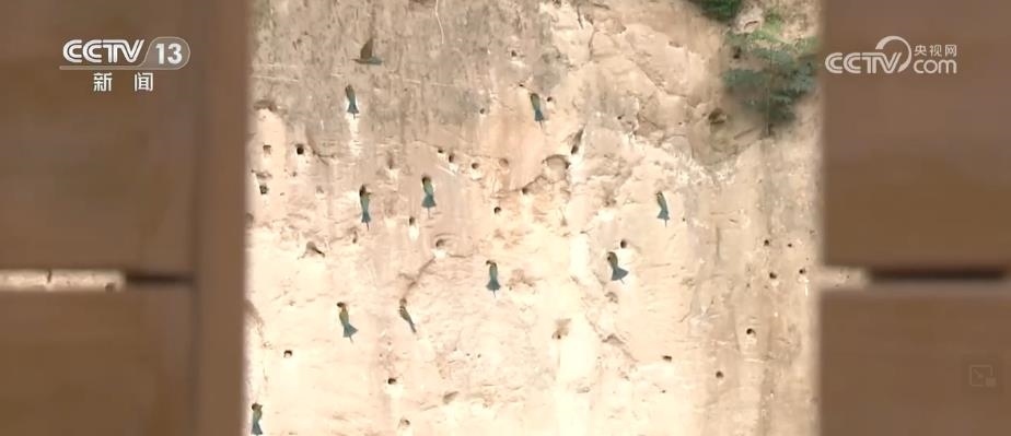 眼前,這些看上去很像是泥巴墻的建筑,其實是人工建造的候鳥巢穴。根據(jù)栗喉蜂虎的生活習(xí)慣,保護(hù)區(qū)工作人員專門在它們回來之前就對懸壁進(jìn)行修整,讓這些美麗的小鳥更方便安家。