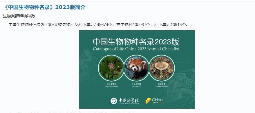 5月22日“國際生物多樣性日”當(dāng)天,中科院生物多樣性委員會在線發(fā)布了《中國生物物種名錄》2023版。據(jù)“物種2000中國節(jié)點”官網(wǎng)介紹,較2022版,2023版名錄新增10027個物種和354個種下單元。