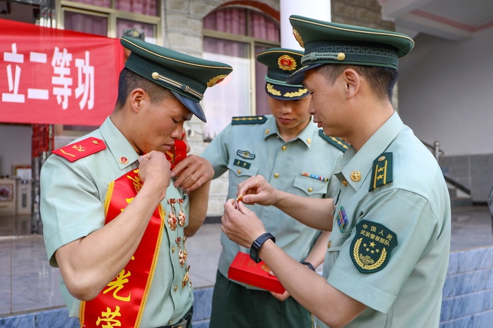鑼鼓喧天,鞭炮齊鳴。近日,云南省楚雄彝族自治州大姚縣桂花鎮(zhèn)大河村張燈結(jié)彩、熱鬧非凡,武警云南總隊昭通支隊派出送喜報小分隊輾轉(zhuǎn)600余公里來到這里,聯(lián)合當(dāng)?shù)厝宋洳亢屯艘圮娙耸聞?wù)局,為榮立個人二等功的現(xiàn)役軍人鄒永金的家屬送去喜報、牌匾和慰問金。