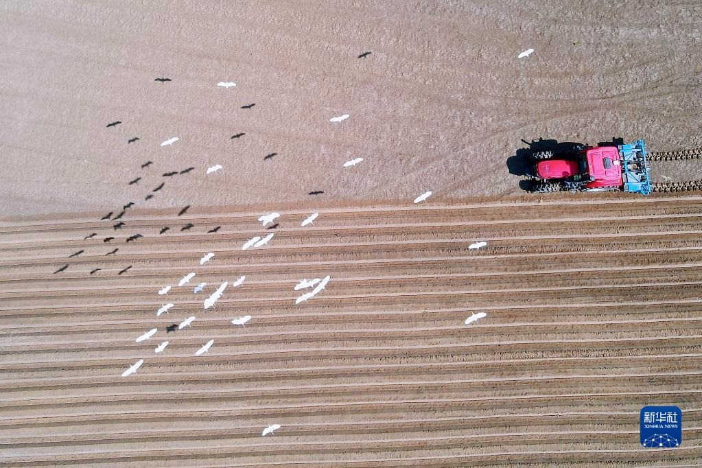 初夏時節(jié),江蘇省如皋市磨頭鎮(zhèn)天陽社區(qū)農(nóng)田里,農(nóng)機(jī)在田野間往來穿梭,成群的白鷺在翻耕的土地上覓食、嬉戲,構(gòu)成一幅美麗的生態(tài)畫卷。
