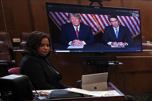 ·當(dāng)?shù)貢r(shí)間5月23日,美國(guó)前總統(tǒng)特朗普通過(guò)視頻會(huì)議出席了“封口費(fèi)”一案的預(yù)審聽(tīng)證會(huì),庭審持續(xù)約15分鐘。