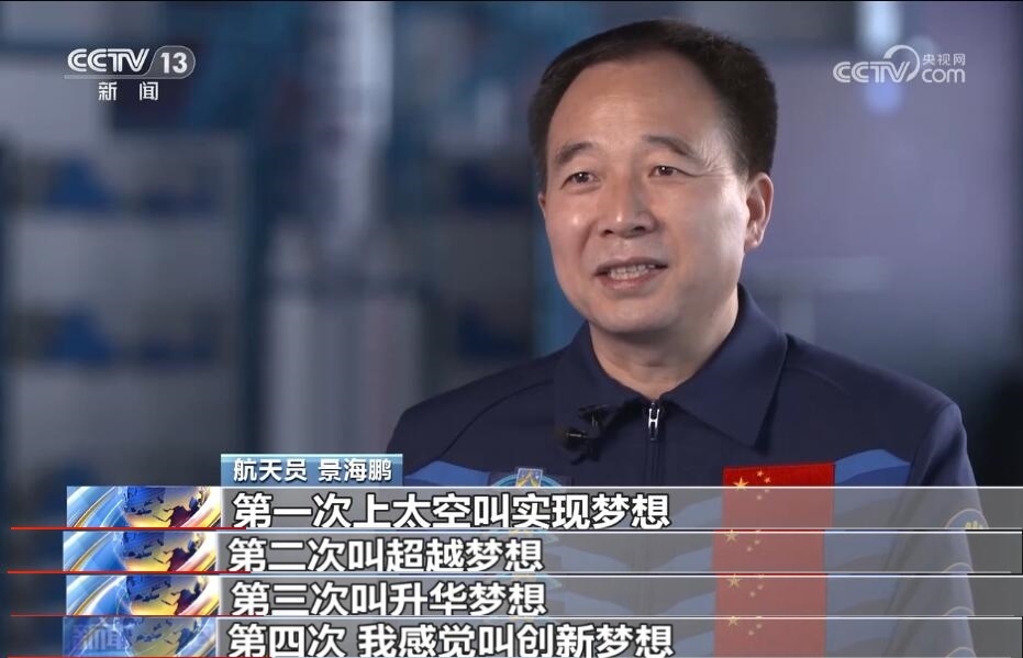 航天員 景海鵬:第一次上太空叫實(shí)現(xiàn)夢想,第二次叫超越夢想,第三次叫升華夢想,第四次,我感覺叫創(chuàng)新夢想。很感恩新時(shí)代,剛才說如果沒有這個(gè)偉大新時(shí)代,就不會(huì)有載人航天的連戰(zhàn)連捷;如果沒有這個(gè)偉大新時(shí)代,還夢想飛兩次飛三次飛四次,你想都不敢想,夢都夢不到。