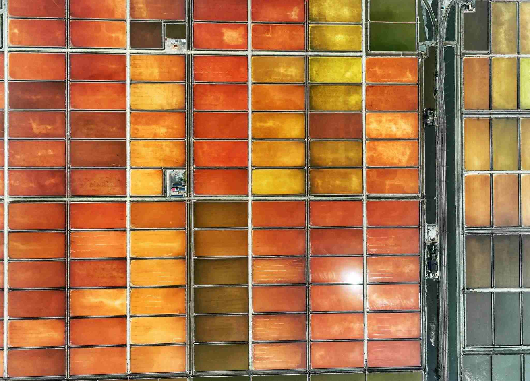 2023年5月22日,天津,位于渤海之濱的長蘆漢沽鹽場色塊分明,俯瞰如大地調(diào)色盤。視覺中國