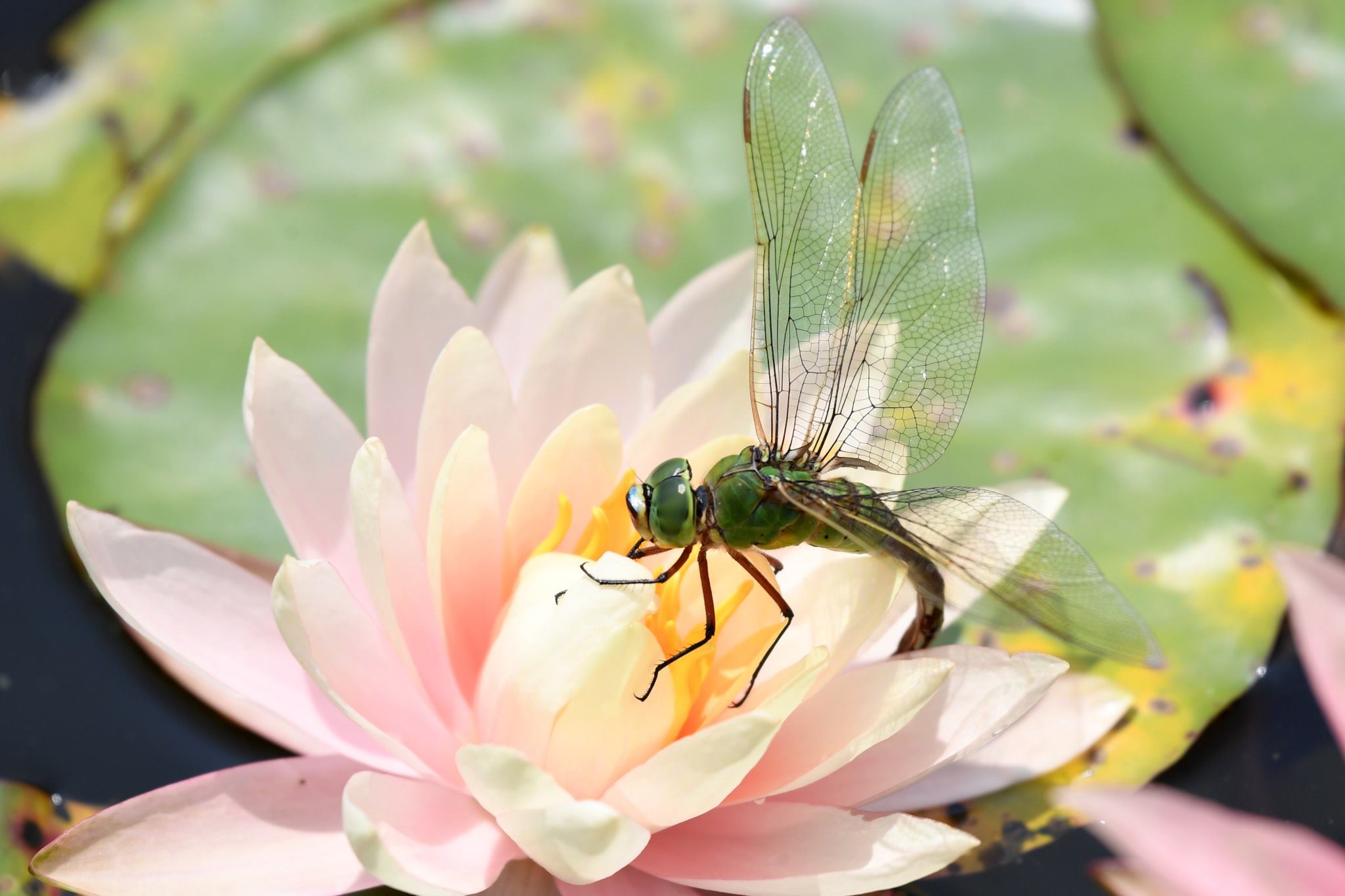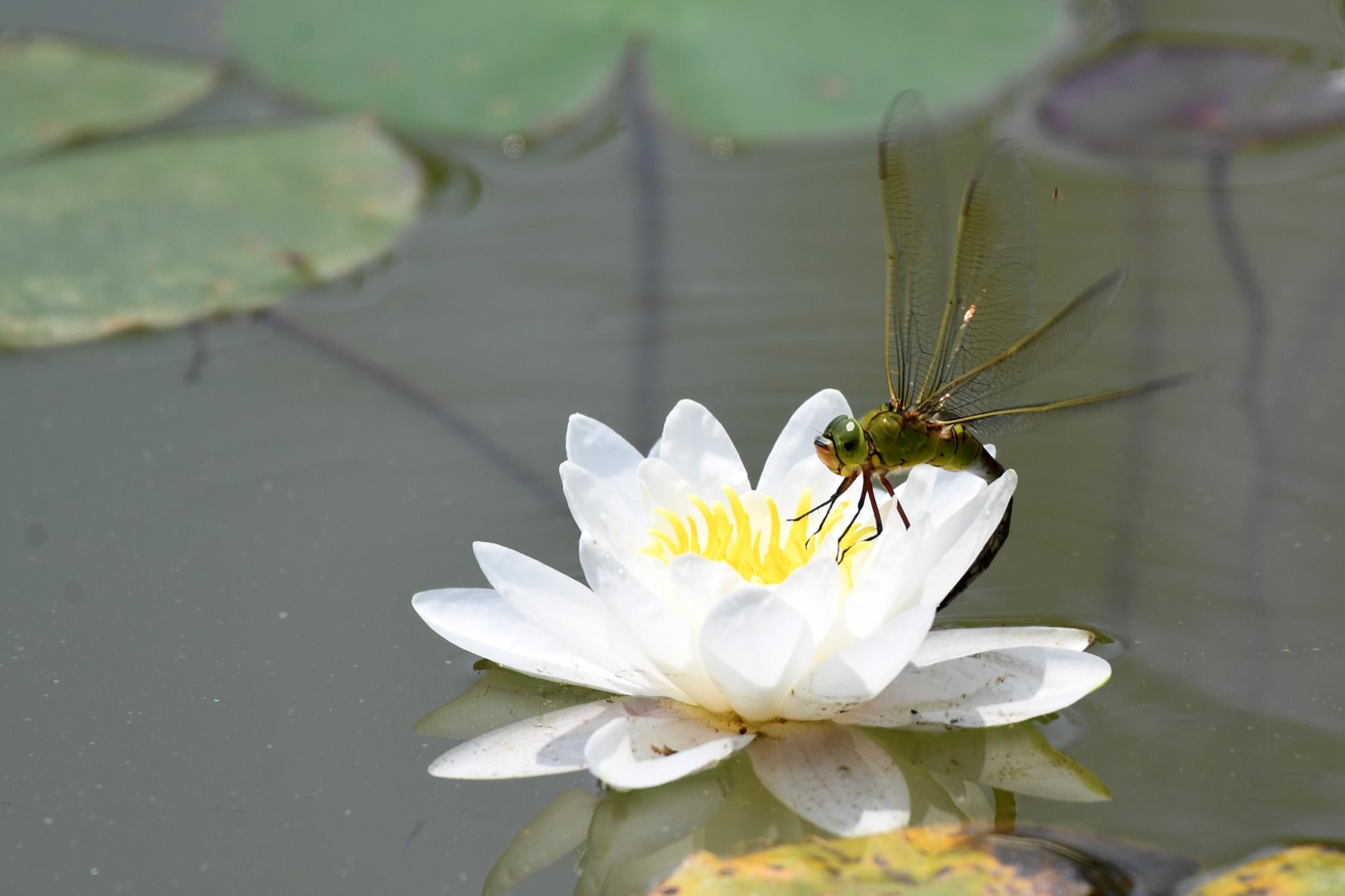 2023年5月26日,貴州仁懷,楠竹林公園的睡蓮綻放,蜻蜓花間歇息,成為一道夏日美景。視覺中國