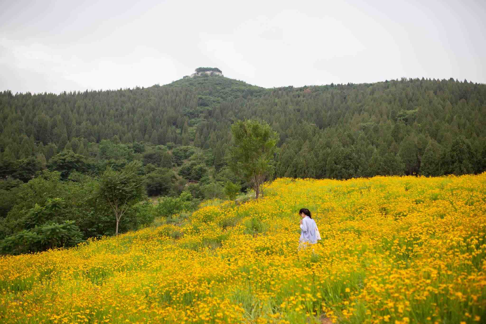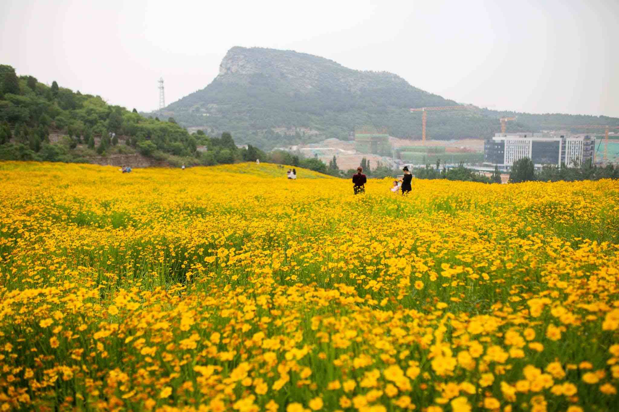 2023年5月26日,濟(jì)南蚰蜒山,山谷大片的金雞菊盛開,宛如一片黃色的花海。視覺中國