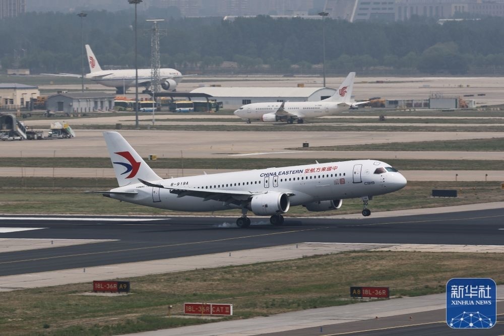當日,C919首個商業(yè)航班東航MU9191從上海虹橋國際機場起飛,安全抵達北京首都國際機場。