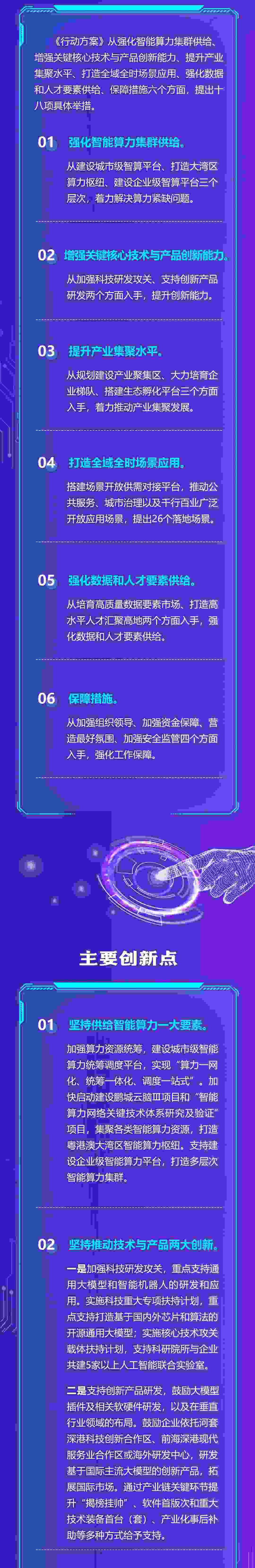 央視網(wǎng)消息:近日,中共深圳市委辦公廳、深圳市人民政府辦公廳發(fā)布《深圳市加快推動人工智能高質(zhì)量發(fā)展高水平應(yīng)用行動方案(2023—2024年)》。主要內(nèi)容如下: