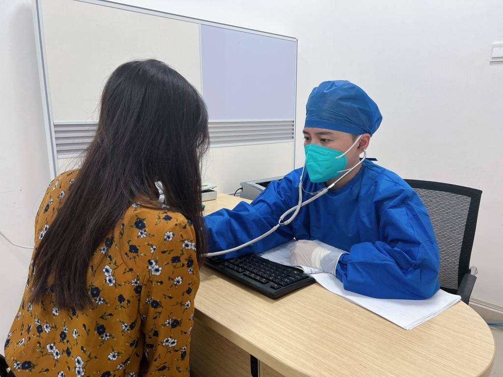 5月31日,在江西省人民醫(yī)院發(fā)熱門診,醫(yī)生為一名患者做檢查。新華社記者 閔尊濤 攝
