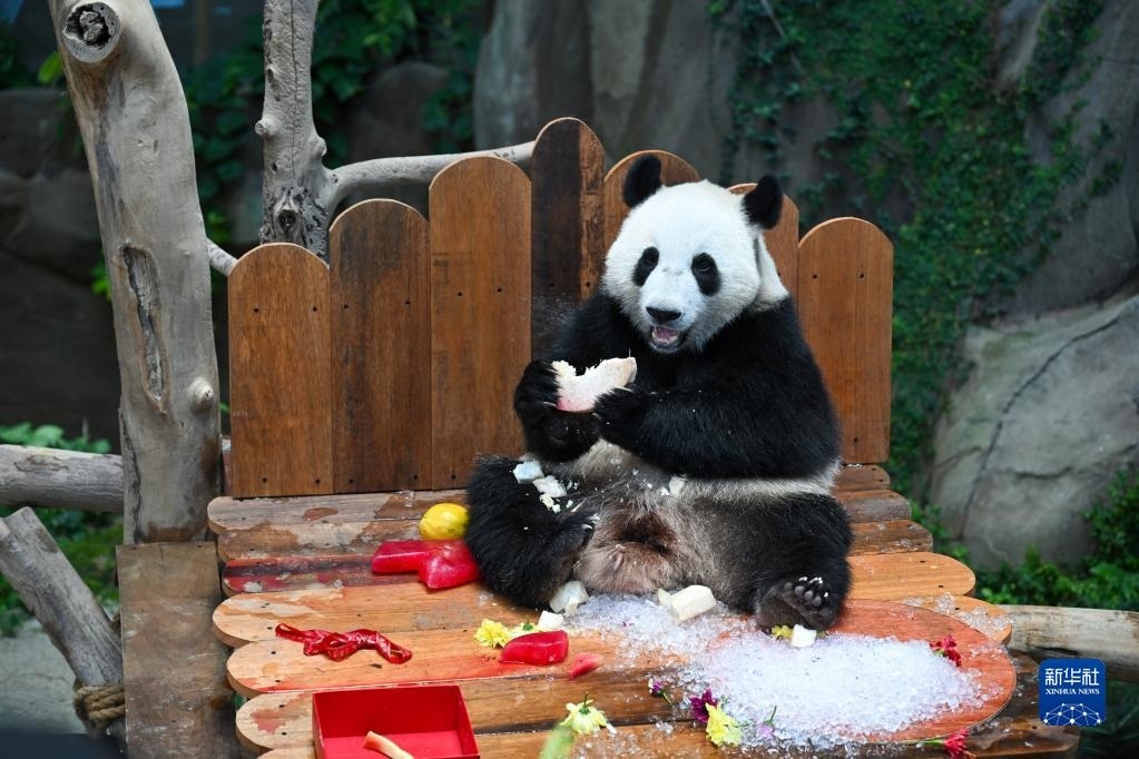 當(dāng)日,大熊貓寶寶“升誼”迎來(lái)兩歲生日,動(dòng)物園為它準(zhǔn)備了特別的生日大餐,眾多民眾前往動(dòng)物園為它慶生?!吧x”是中國(guó)旅馬大熊貓“興興”和“靚靚”生下的第三只寶寶,出生于2021年5月31日中馬建交47周年紀(jì)念日當(dāng)天。新華社記者 朱煒 攝