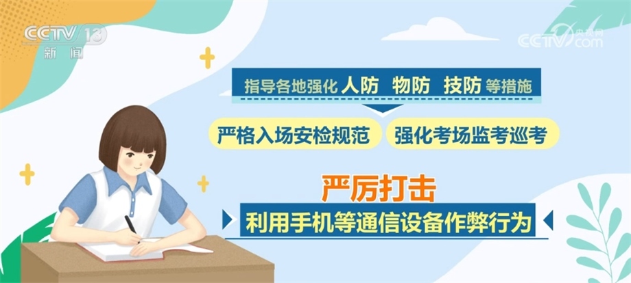 同時,會同公安部、工業(yè)和信息化部等部門聯(lián)合開展打擊作弊專項行動,將防范手機作弊作為重中之重,多措并舉、綜合施策,指導(dǎo)各地強化人防、物防、技防等措施,嚴(yán)格入場安檢規(guī)范,強化考場監(jiān)考巡考,嚴(yán)厲打擊利用手機等通信設(shè)備作弊行為。對于在高考中存在作弊行為的考生和人員,將依法依規(guī)嚴(yán)肅處理,堅決維護(hù)高考的公平公正。