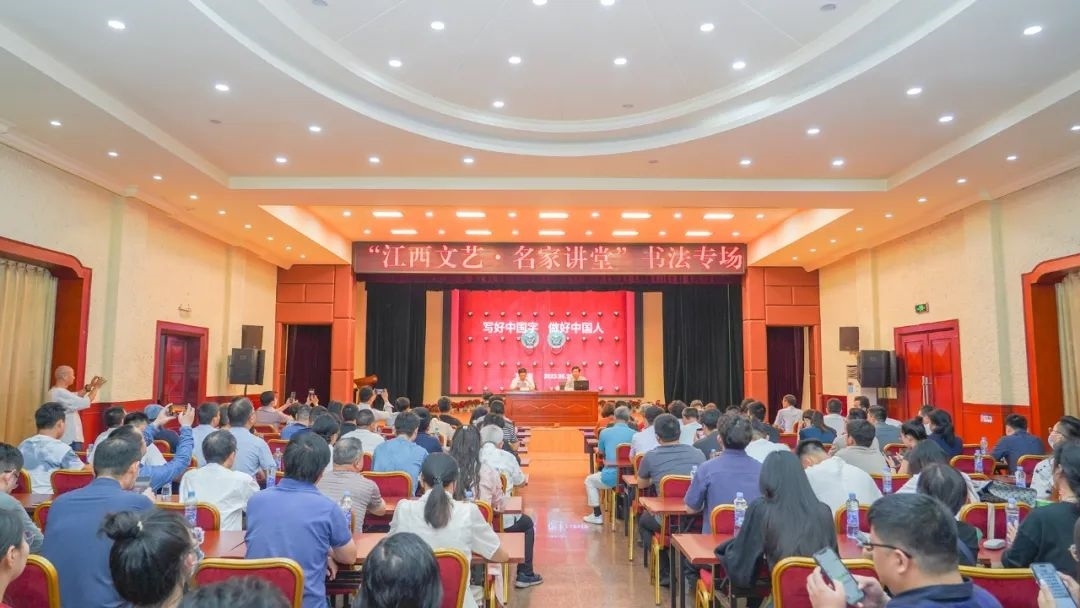 為深入學習貫徹習近平新時代中國特色社會主義思想和黨的二十大精神,拓展我省書法工作者專業(yè)視野,增強傳承中華優(yōu)秀文化的社會責任感,5月31日上午,由省文聯(lián)主辦,省書協(xié)、省文聯(lián)組聯(lián)部承辦的“江西文藝·名家講堂”在省文聯(lián)舉行。省文聯(lián)黨組書記饒利萍,省文聯(lián)黨組成員、主席葉青,省文聯(lián)黨組成員、副主席鄔定忠出席。講座由省文聯(lián)副主席毛國典主持。省書協(xié)在昌主席團成員、省書協(xié)理事,以及來自全省各地的書法工作者、愛好者共200余人現(xiàn)場聆聽講座。