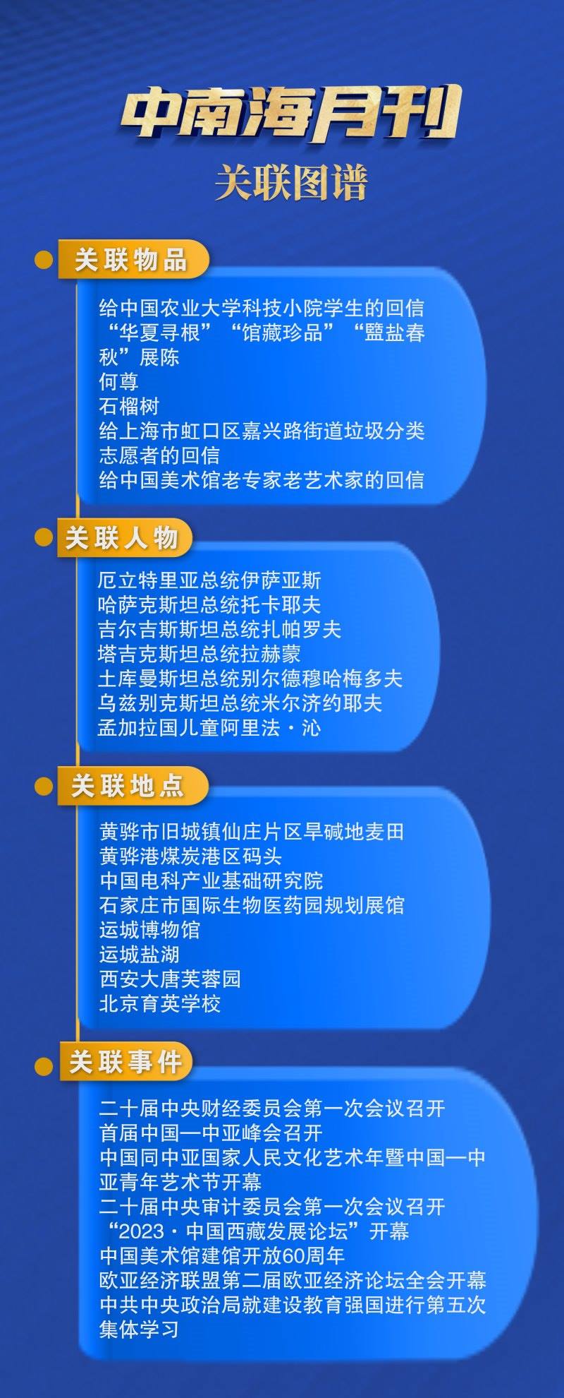 分析觀察央視網(wǎng)I學(xué)習(xí)數(shù)據(jù)庫生成的本月關(guān)聯(lián)圖譜,和中華文明相關(guān)聯(lián)的物品、地點、事件引人關(guān)注,彰顯出總書記對中華文明的一貫重視和保護。