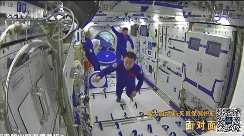 吳大蔚:從我親身來做咱們空間站還有前面的各次任務(wù)來看,航天員整體上睡眠還是不錯的,他們在天上的睡眠效率比地面還要好一些。因為一個是在飛行之前,他們是以全力以赴的狀態(tài)在準(zhǔn)備。到了天上以后,他們很快就適應(yīng)環(huán)境了,更踏實了,睡眠效率比地面還要高,我們覺得確實是他們心理素質(zhì)非常好,也確實是證明了我們載人航天在不斷進步,這也是一個非常好的,非常有意思的數(shù)據(jù)。