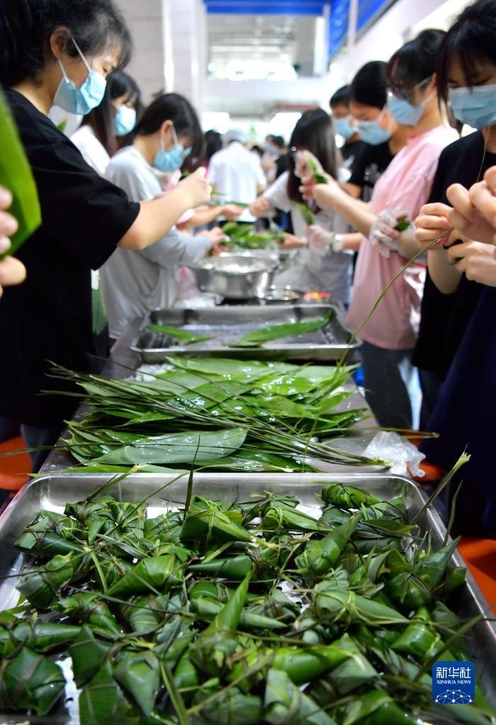 當(dāng)日,湖北省恩施土家族苗族自治州宣恩縣第一高級中學(xué)組織高三學(xué)生參加傳統(tǒng)手工包粽子比賽,讓即將踏入考場的學(xué)生在親自動(dòng)手體驗(yàn)傳統(tǒng)文化的過程中舒緩心情、釋放壓力,以輕松的心態(tài)迎接高考。