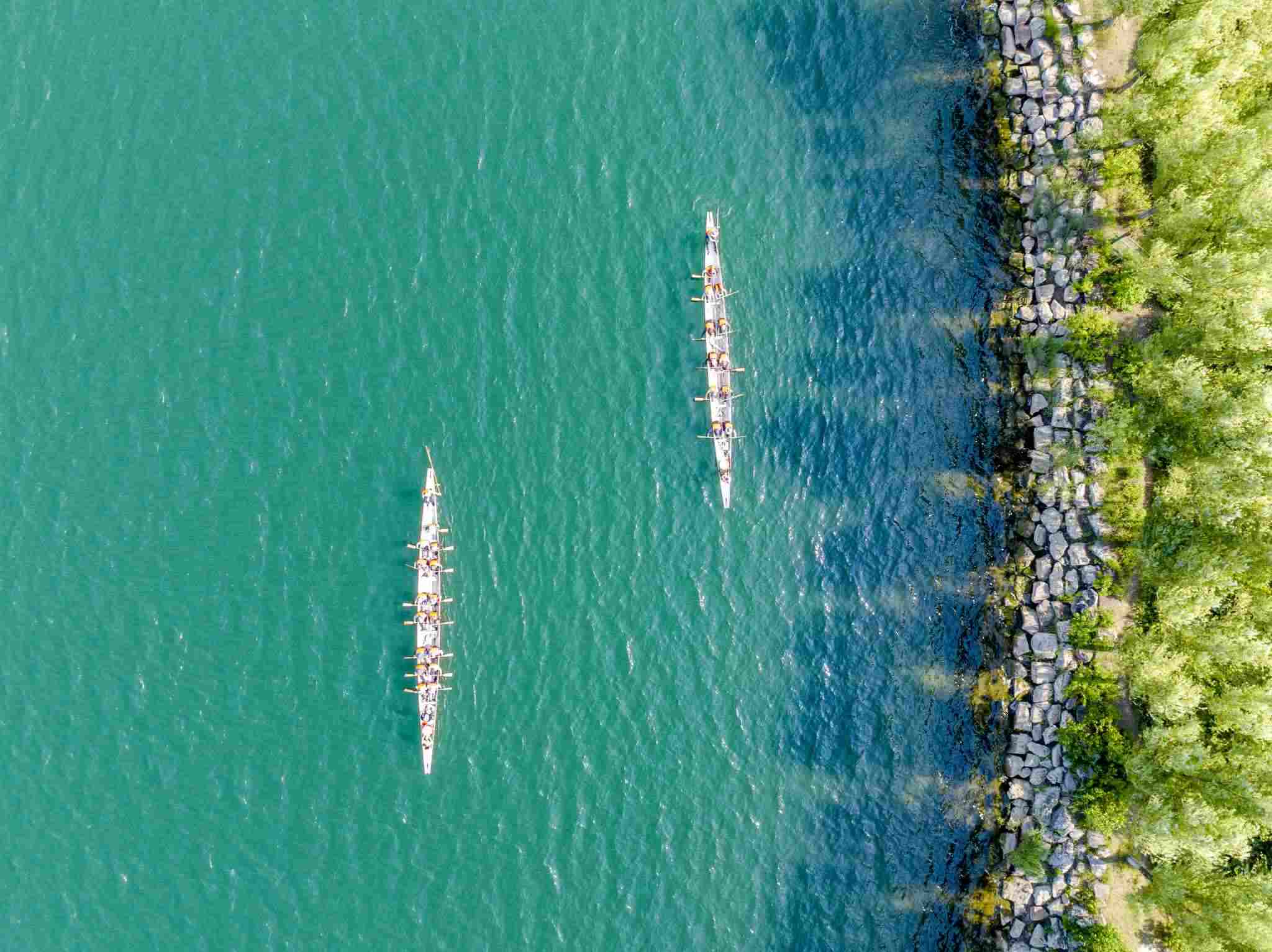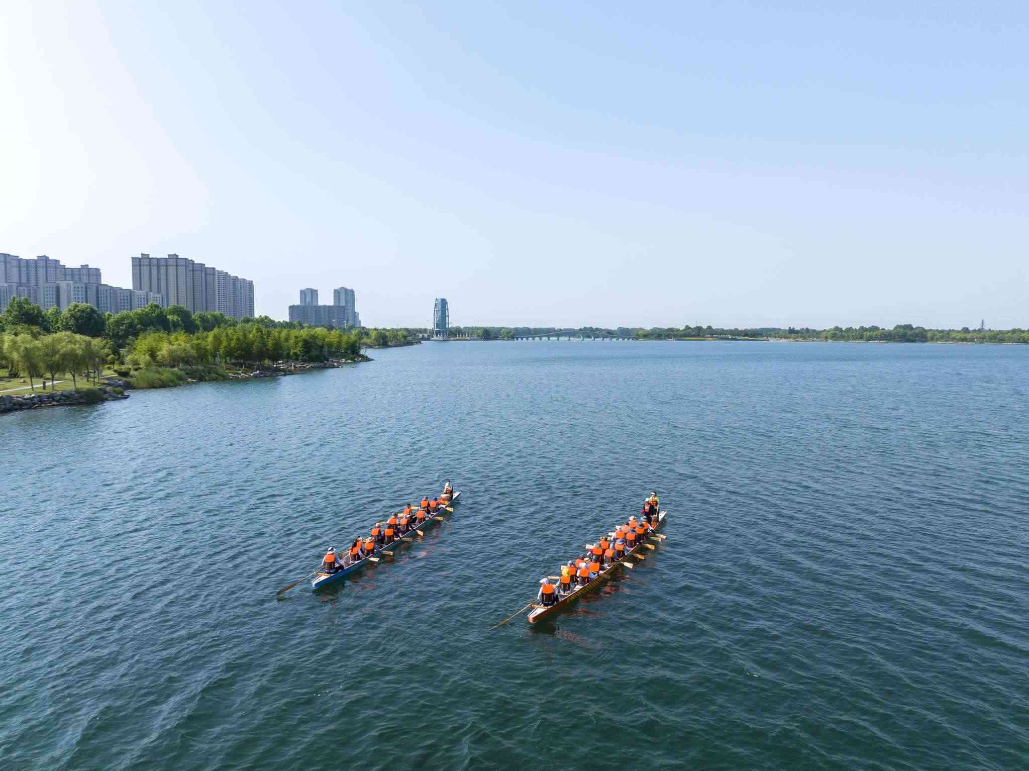 2023年6月8日,江蘇連云港,東海縣西雙湖風(fēng)景區(qū),多支龍舟隊在西雙湖水域進行訓(xùn)練,積極備戰(zhàn)端午龍舟賽。視覺中國