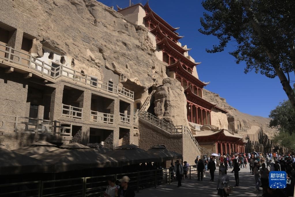 6月8日,游客在世界文化遺產(chǎn)地莫高窟參觀游覽。