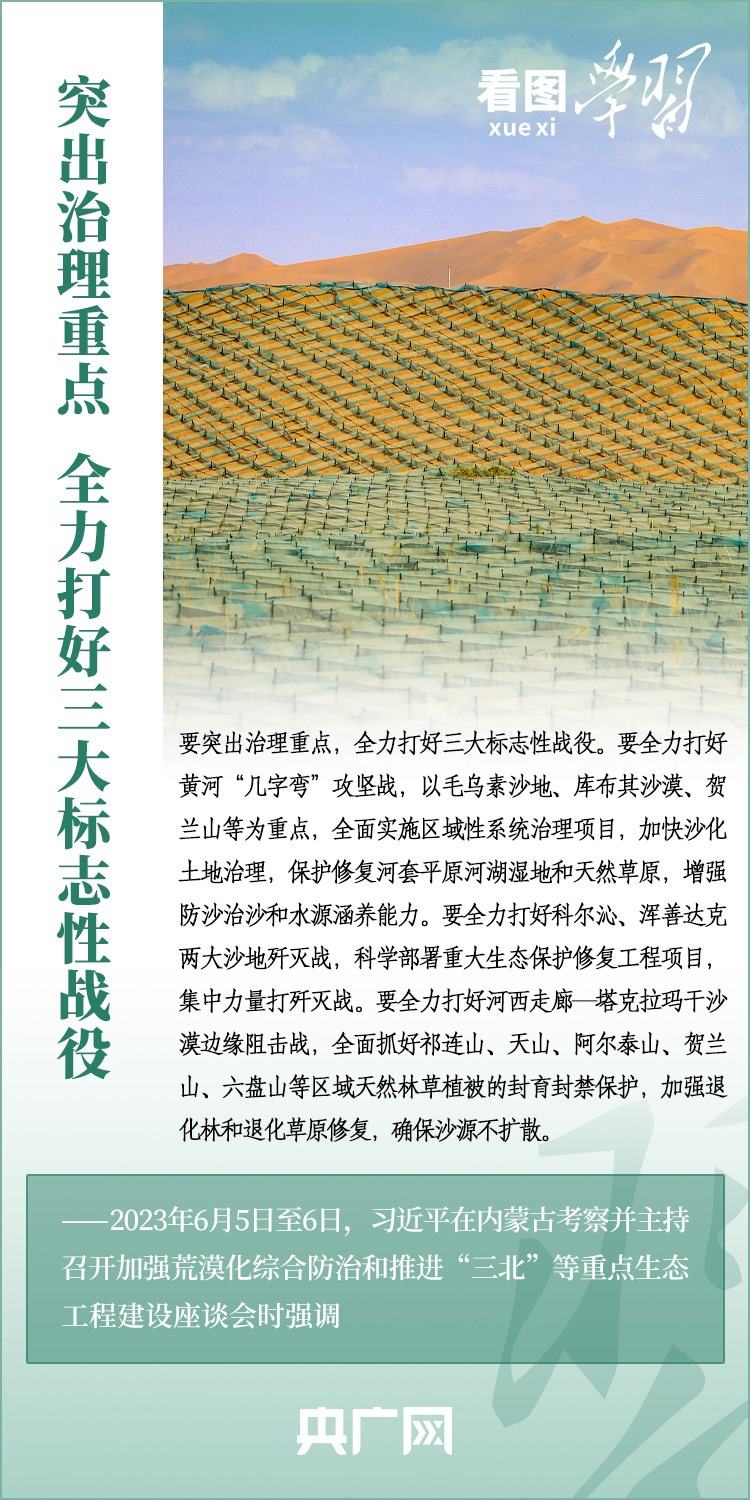 6月5日至6日,習(xí)近平總書記來(lái)到內(nèi)蒙古自治區(qū)巴彥淖爾市,深入自然保護(hù)區(qū)、現(xiàn)代農(nóng)業(yè)示范園區(qū)、林場(chǎng)、水利部門等考察調(diào)研,主持召開加強(qiáng)荒漠化綜合防治和推進(jìn)“三北”等重點(diǎn)生態(tài)工程建設(shè)座談會(huì)并發(fā)表重要講話??倳洀?qiáng)調(diào),要勇?lián)姑?、不畏艱辛、久久為功,努力創(chuàng)造新時(shí)代中國(guó)防沙治沙新奇跡,把祖國(guó)北疆這道萬(wàn)里綠色屏障構(gòu)筑得更加牢固,在建設(shè)美麗中國(guó)上取得更大成就。一起來(lái)學(xué)習(xí)!