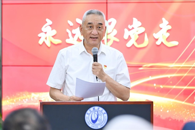 觀展后,參會嘉賓與管理學(xué)院200多名學(xué)生黨員及入黨積極分子在南院報告廳,共同開展“同上一堂主題教育專題黨課,在黨的旗幟下勝利前進”黨課活動。此次講座由管理學(xué)院黨委書記張玲娜主持,由北京新四軍暨華中抗日根據(jù)地研究會原副會長劉華蘇主講。