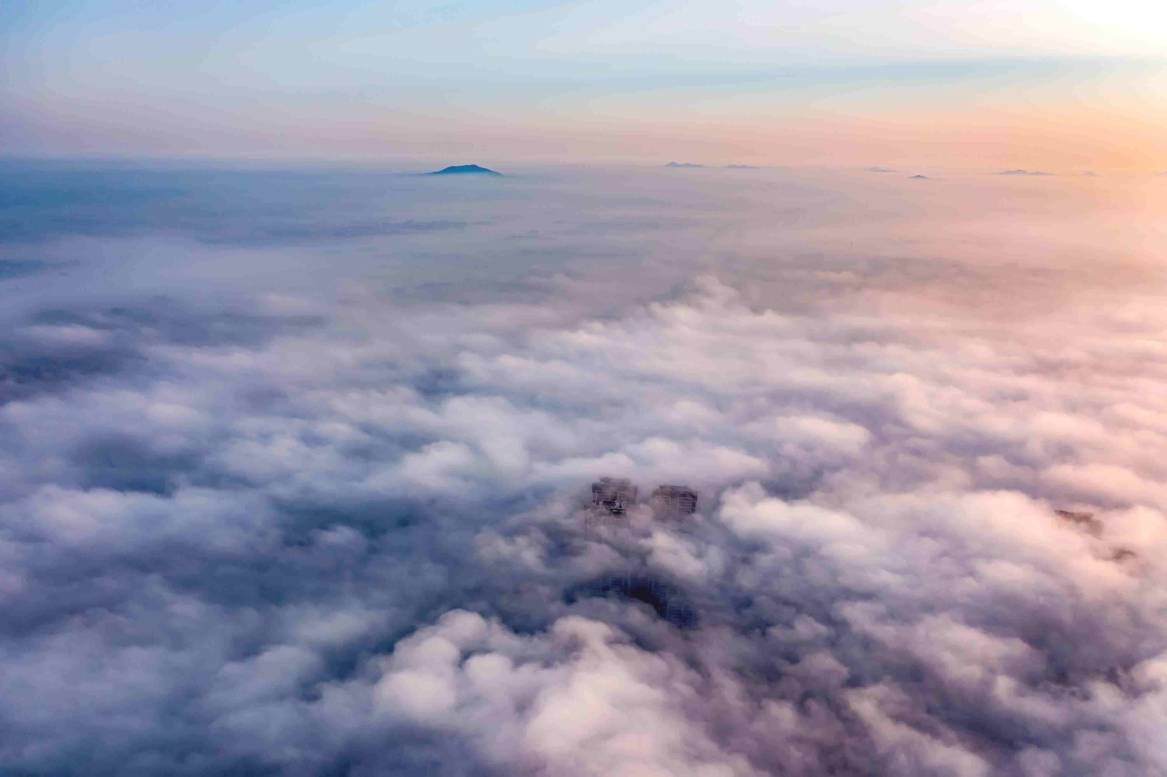 2023年6月11日,江蘇連云港東海縣,城市上空云霧繚繞,蔚為壯觀。 視覺中國