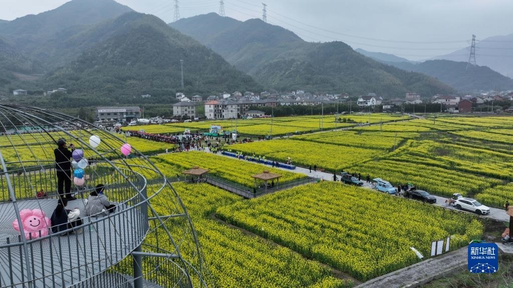 在浙江杭州臨安區(qū)青山湖街道郎家村“共富稻田”,游客乘坐田野小火車在油菜花地里感受春日美景(4月1日攝)。“共富稻田”定位多功能田園農(nóng)旅綜合體,陸續(xù)打造了妙哉花園、稻田觀光道、稻田餐廳、稻田茶吧等鄉(xiāng)村旅游特色節(jié)點(diǎn),吸引城市居民前來體驗(yàn)戶外農(nóng)田生活。新華社記者 徐昱 攝