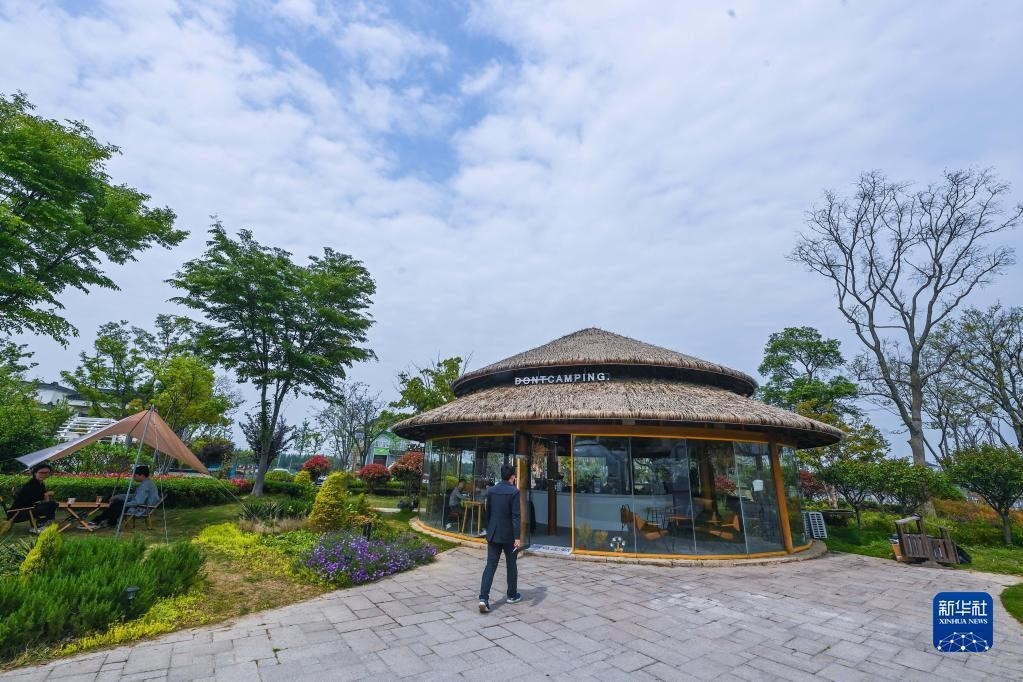 位于浙江湖州織里鎮(zhèn)伍浦村漁耕文化園的陶灣里鄉(xiāng)村咖啡店(4月11日攝)。近年來,織里鎮(zhèn)依托當(dāng)?shù)孛利愢l(xiāng)村建設(shè)以及自然風(fēng)光,招引鄉(xiāng)賢返鄉(xiāng)創(chuàng)業(yè),依托閑置民宅、閑置土地建設(shè)特色咖啡店、花海景觀、特色民宿和農(nóng)家樂等,發(fā)展鄉(xiāng)村旅游經(jīng)濟(jì)。新華社記者 徐昱 攝