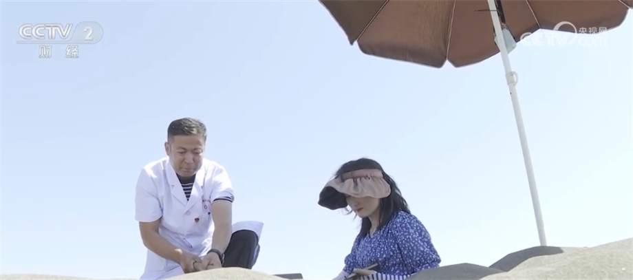 連日來的高溫天氣讓新疆吐魯番掀起了沙療“熱”。沙療是利用當(dāng)?shù)鬲?dú)特的光熱資源和氣候地理?xiàng)l件進(jìn)行的治療方式,讓高溫天氣成為了當(dāng)?shù)厝罕娫鍪罩赂坏摹盁豳Y源”。