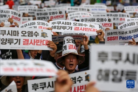 數(shù)千名韓國漁民集會反對日本核污染水排海。