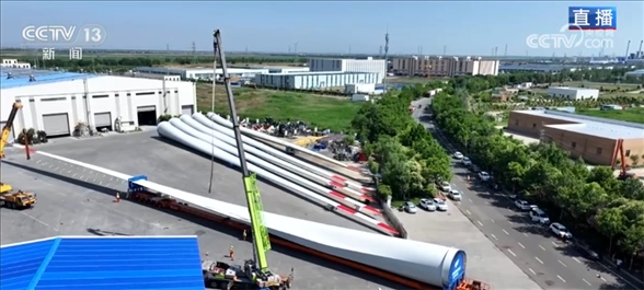 央視網(wǎng)消息:今天(6月14日),在江蘇連云港,100%我國自主知識(shí)產(chǎn)權(quán)的123米超長海上風(fēng)電葉片剛剛完成正式安裝前的全部測試,整裝待發(fā)??偱_(tái)央視記者古峻嶺此刻就在這個(gè)葉片裝車啟運(yùn)的現(xiàn)場,我們一起來連線他。