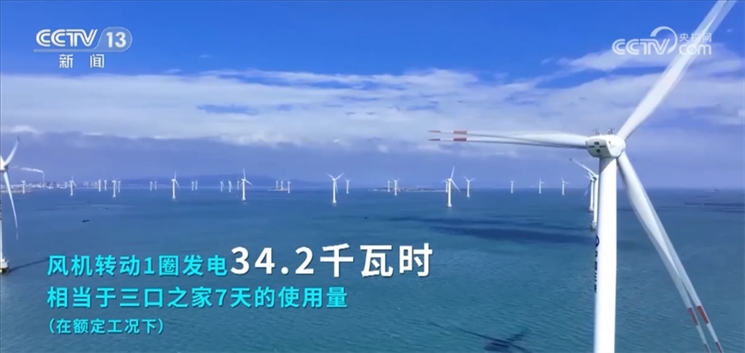 風(fēng)機(jī)轉(zhuǎn)動(dòng)1圈發(fā)電34.2千瓦時(shí),相當(dāng)于三口之家7天的使用量(額定工況下),1小時(shí)發(fā)電1.6萬千瓦時(shí),相當(dāng)于每分鐘發(fā)電267千瓦時(shí)(額定工況下)。